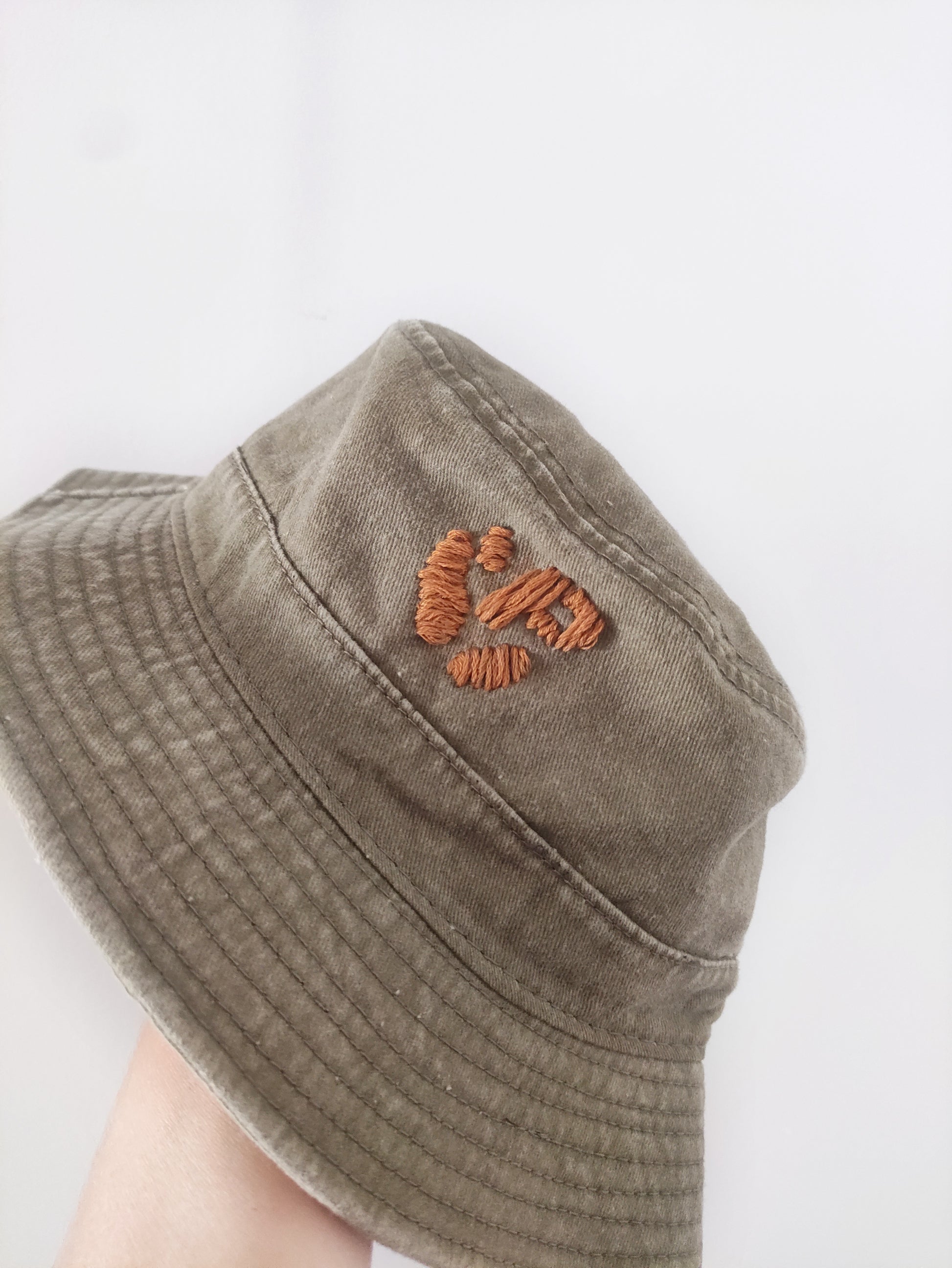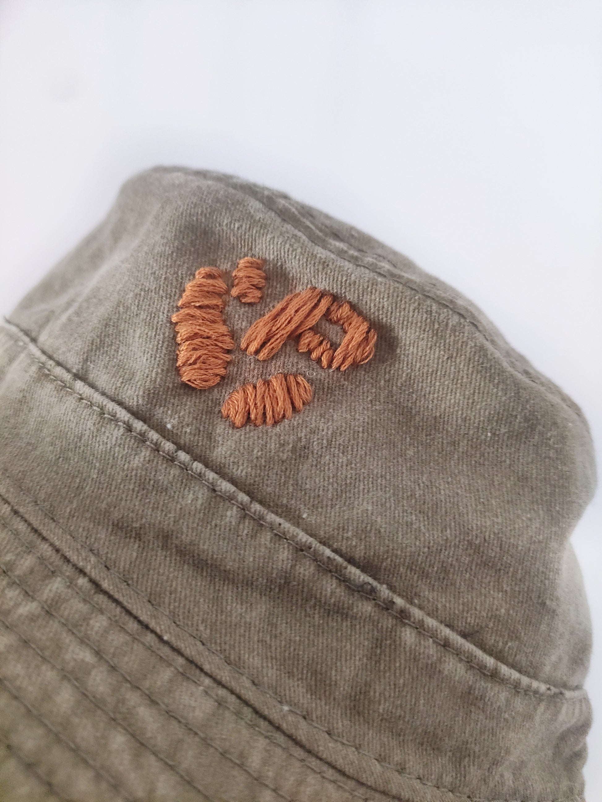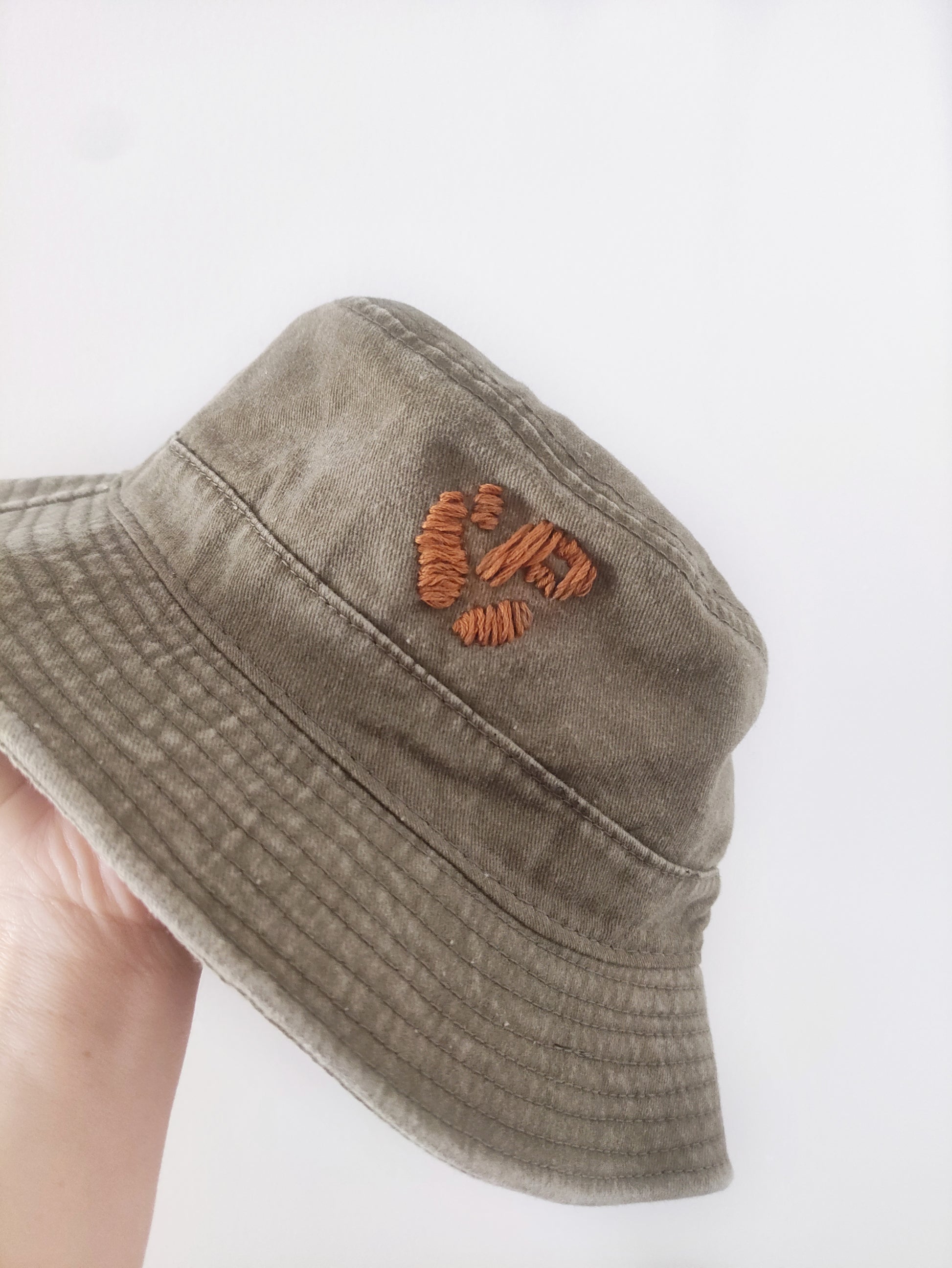 Bob vert olive, avec le « P » de Pépins brodé à la main.