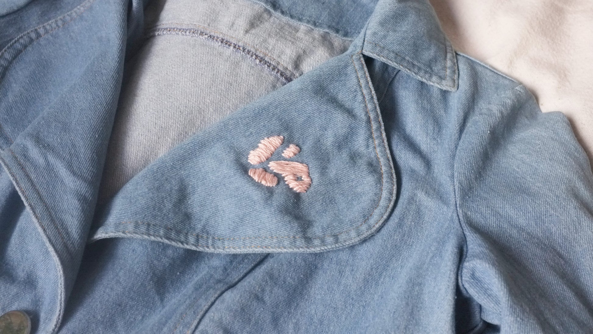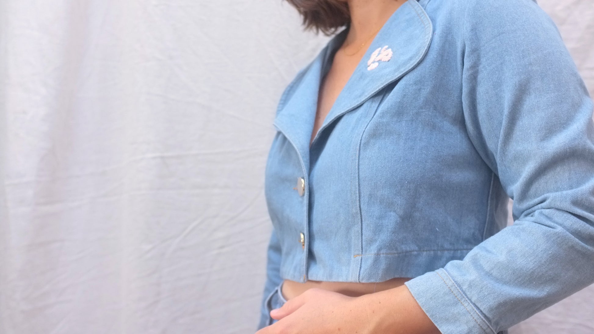 Veste courte en jean, broderie Pépins